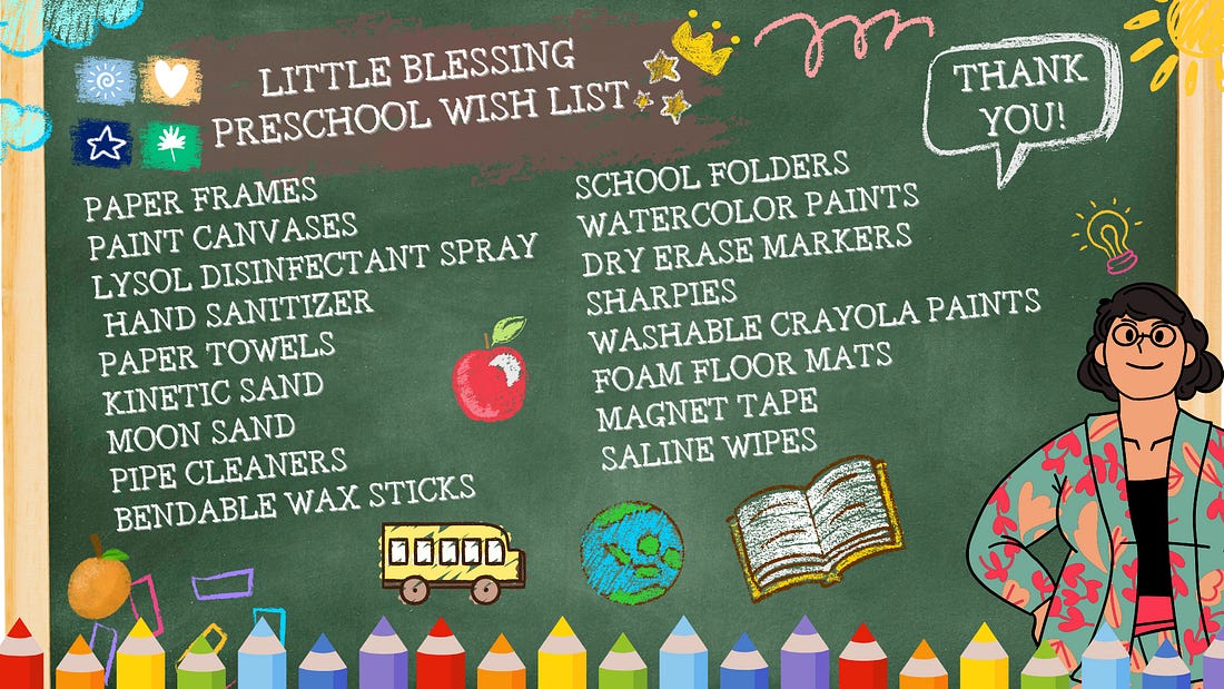 Help Little Blessings Preschool start the year off right! We could really use supplies from our wish list! Shop our list here