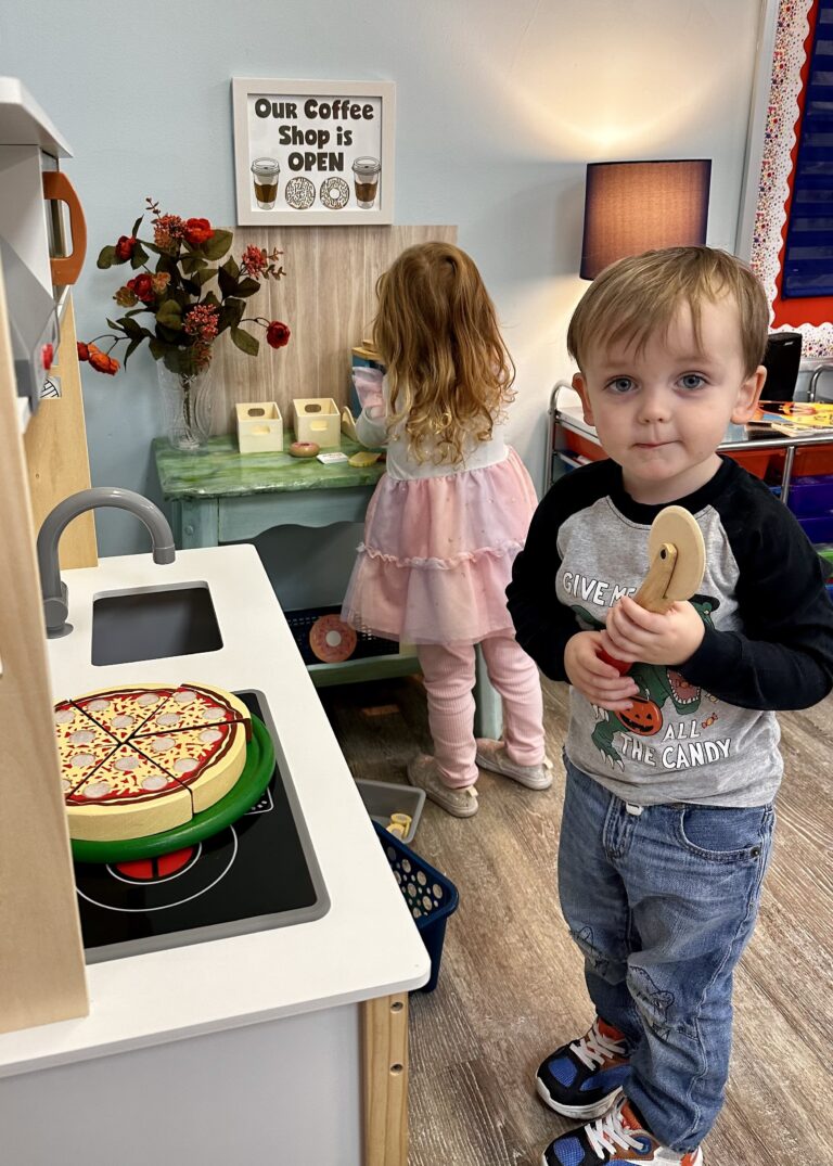 The two year old class is designed for children who are turning two by September 30. For most students, this is their first time away from home and we strive to make it a safe place to learn confidence and a love of play outside of home. Goals for the two year old class are learning to share, listen to a story, separate from mom/dad, and wait your turn, while exploring God’s world in and around the classroom environment. All of this is accomplished with Circle Time, Art, Music, Chapel, Free Exploration, Story Time within a themed day.
