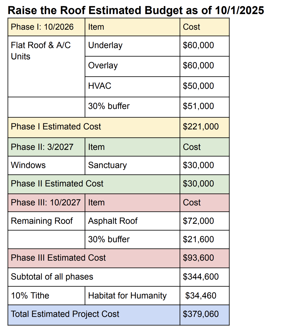 - We need to raise funds to replace the roof and ensure a safe, welcoming home for worship, service projects, and community events.